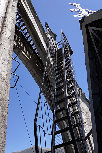 Today I went to the only Gothic basilica in Quito. Am I looking for the wrong architecture? This is my first view above the city and it’s magnificent. I count at least 3 volcanoes. Lonely Planet warns of the ascent up the tower. The wooden plank is nothing – it goes along the roof, not across the tower. The